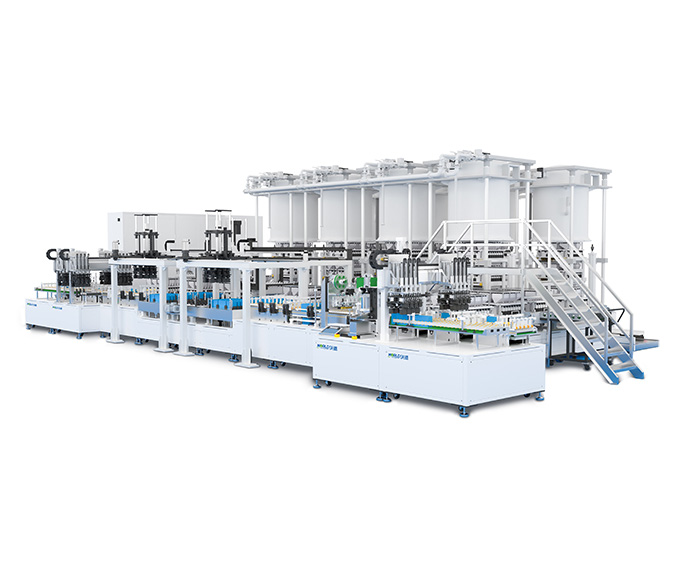 产品简介:该设备可实现常规铝壳电池的自动等压注液,整体模块化设计,可根据静置时间增减静置钟罩数量及调整RGV搬运货叉的轨道长度等,整机布局便于维护保养及维修。